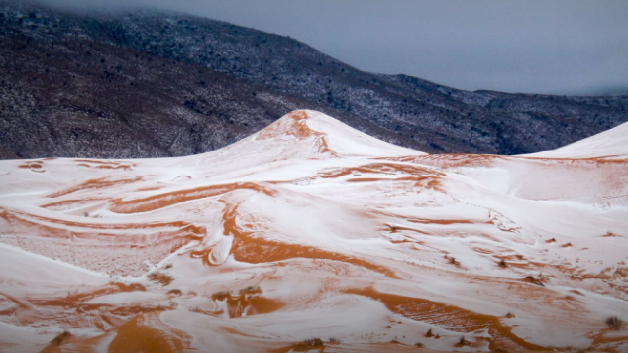 Dünyanın en büyük çölü Sahra'da kar yağdı. Yerel halk Sahra Çölü'nde oldukça nadir görülen kar yağışından dolayı şaşkınlığa uğradı.