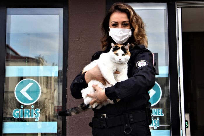 Zamanla polis memurlarının en yakın arkadaşı haline gelen "Pakize" adını verdikleri kediyi veterinere götürerek aşılarını yaptıran polisler, her gün elleriyle besleyip, tüm ihtiyaçlarını karşılıyor.