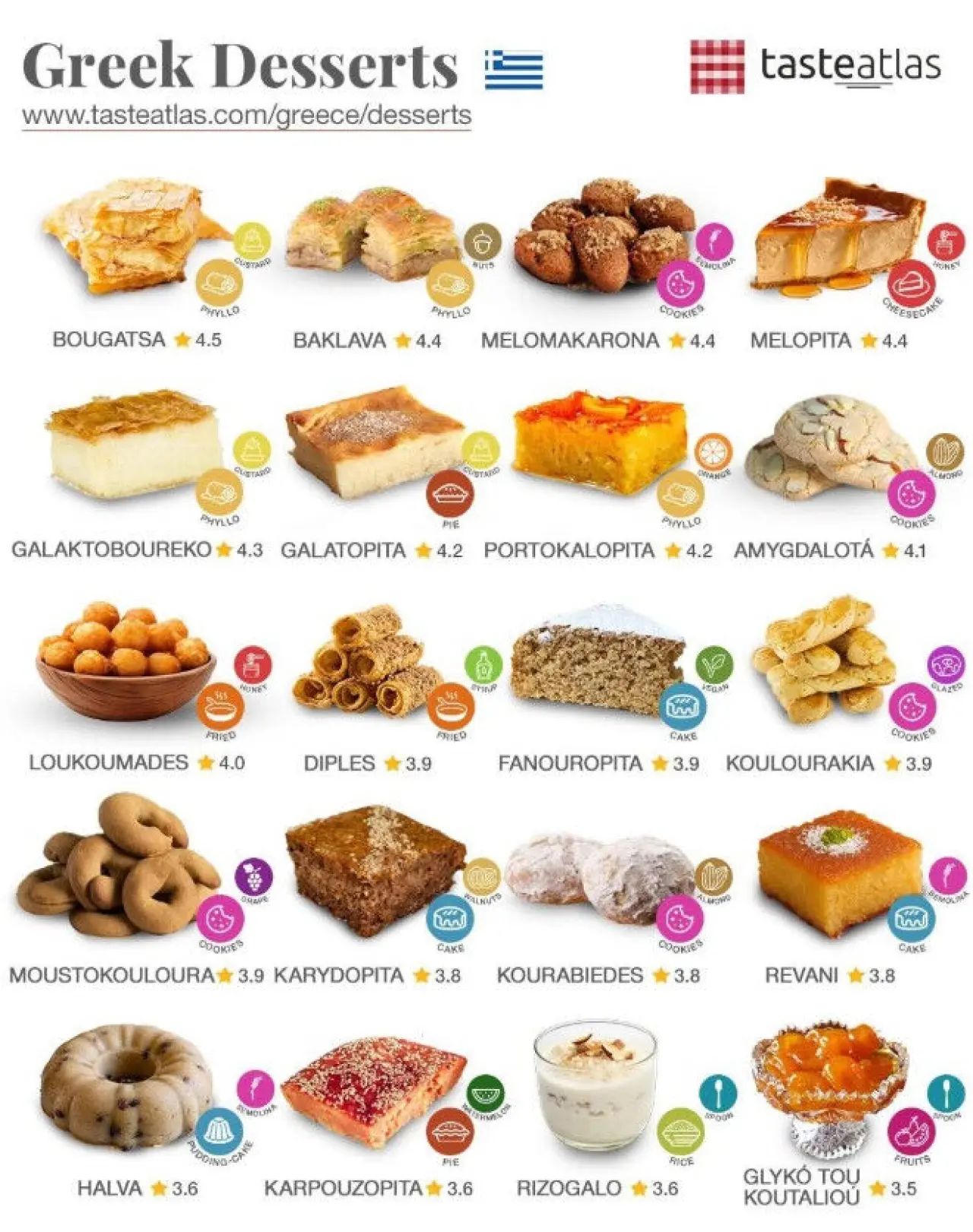 Dünya mutfaklarından öne çıkan lezzetleri paylaşan Taste Atlas, son olarak Yunan mutfağının tatlılarını tanıttı. Ancak listede baklava, revani ve lokma gibi pek çok tatlının aslında Türk mutfağına ait olduğu görüldü.