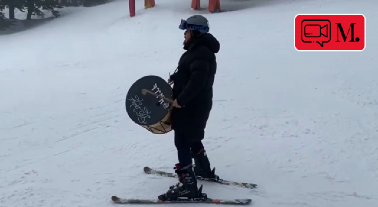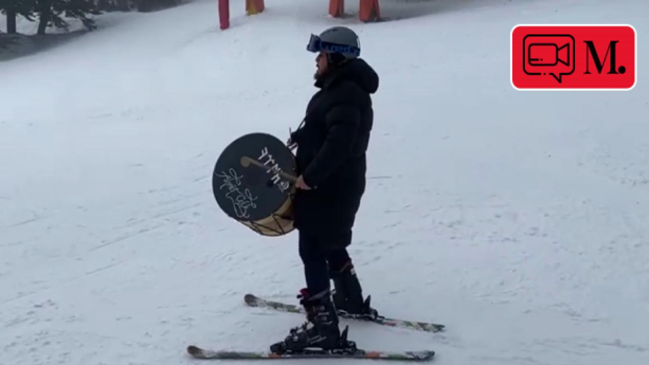Çelik, ardından kayarken davul da çaldı.