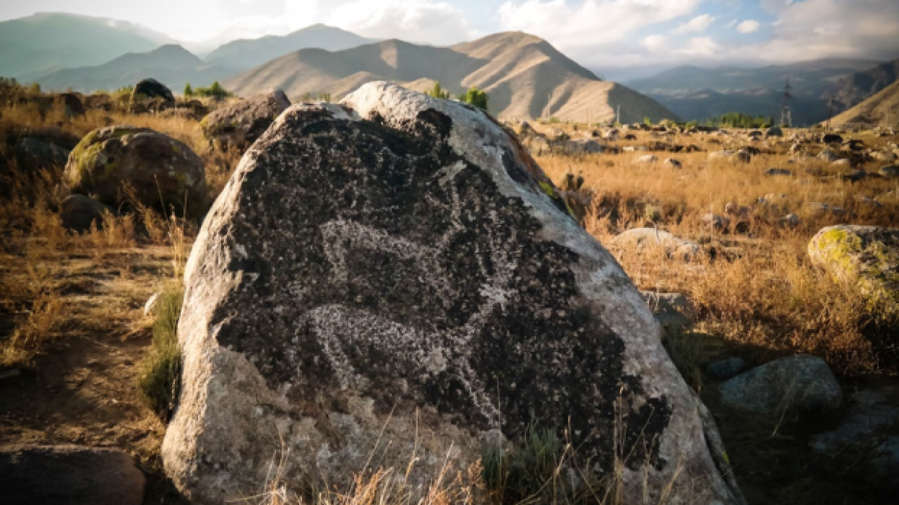 Kırgızistan’ın Çolpon-Ata Petroglif Açık Hava Müzesi'ndeki eserlerde av kültürü, hayvanlarla mücadele sahneleri, avcı tasvirleri, sembolik çizgi, daire ve dikdörtgen şekiller yer alıyor.