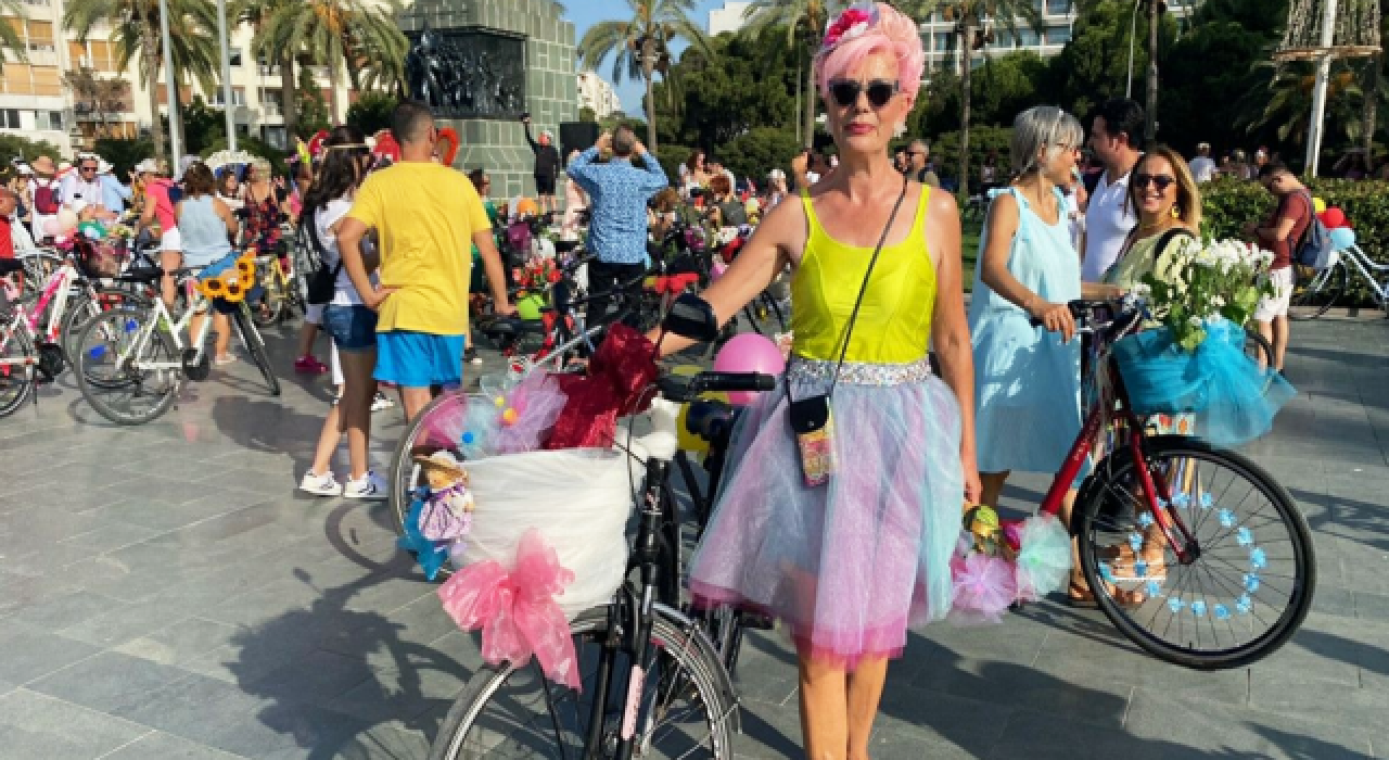 Renkli kıyafetler giyen kadınlar, daha sonra balon, çiçek ve oyuncaklarla süsledikleri bisikletleriyle tur attı.