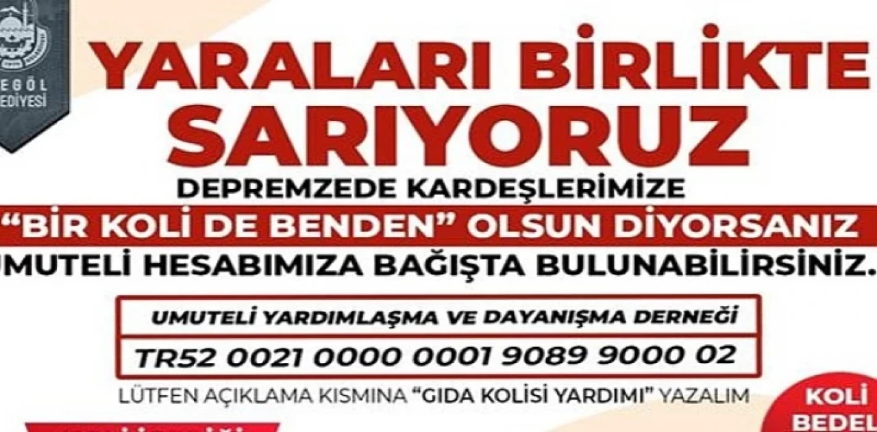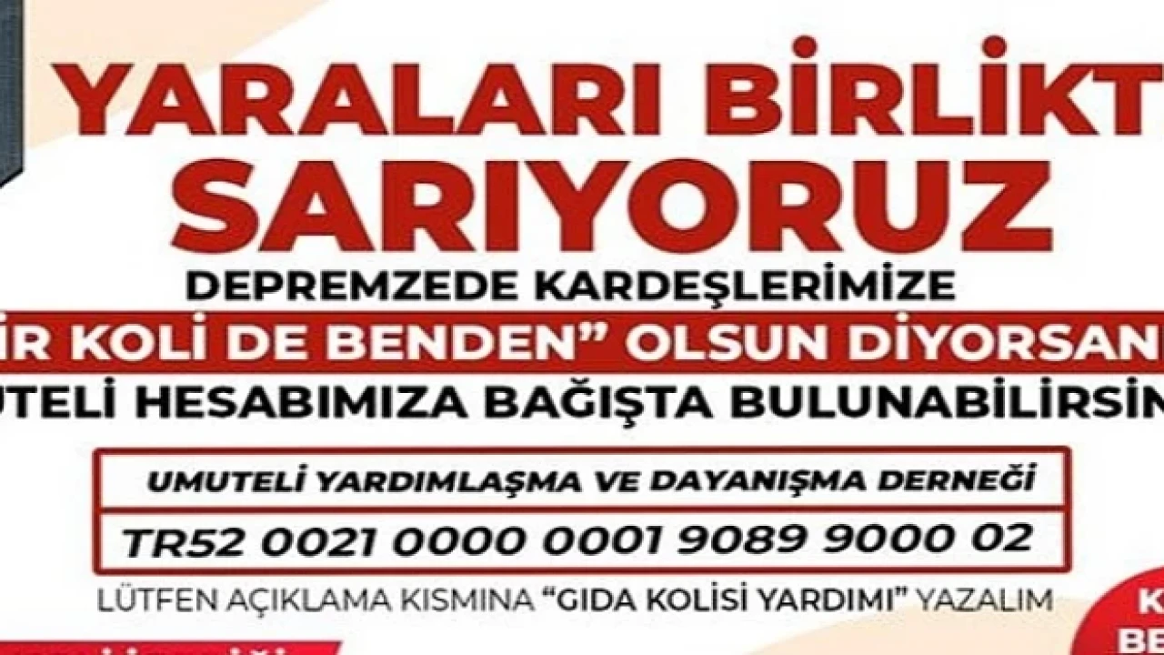 Özellikle hazır yiyecek ihtiyacının hat safhada olduğu deprem bölgesi için “Yaraları Birlikte Sarıyoruz” sloganıyla başlatılan kampanyada, depremzedeler için gıda kolisi bağışlamak isteyenler nakdi olarak veya belirtilen listedeki gıda ürünlerinin yer aldığı koliyi kendisi hazırlayarak yardım toplama merkezlerine getirebilecek. Kampanyaya ilişkin yapılan açıklamada, “Depremzede kardeşlerimiz için bir koli de benden olsun diyorsanız, Umuteli hesabımıza bağışta bulunabilirsiniz.” İfadelerine yer verildi.